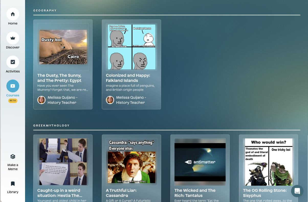 - The beta for Courses. Courses are a simple, fun way to teach a single idea, led by a meme.