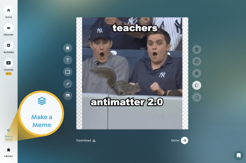 Also new on the website is our single-player mode creation tools. Over the past year many of you have asked for a simpler way to create a meme for your class, or to share with another teacher. You can now create a meme right from our main page:
