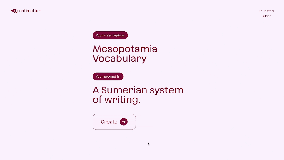 • Meme-promptu: Give your students prompts (from a broader topic) to make a meme and let their friends guess the correct prompt while analyzing their friends’ memes. Try the Educated Guess activity on Antimatter for this one! You can give multiple prompts on Educated Guess, and project your screen to your class to review the memes & guess answers!