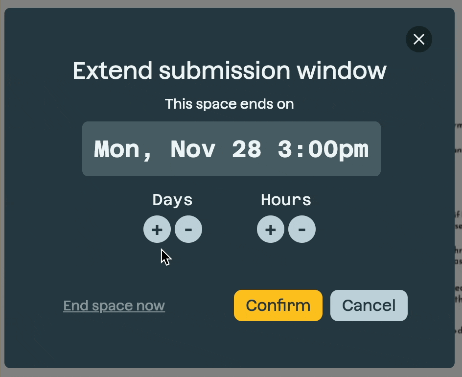 When you open a space, it will be set to close in 1 day. Of course, if you need more or less time, you can always extend or reduce it.
